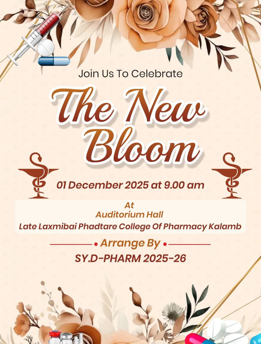 Dnyan, Kala, Krida, & Krishi Pratishthan's Late Laxmibai Phadtare College of Pharmacy Approved by PCI, New Delhi, DTE, Mumbai, Recognized by Govt. of Maharashtra, Affiliated to MSBTE, Mumbai. Dr. Babasaheb Ambedkar Technological University, Lonere, Raigad. At Post: Kalamb Walchandnagar, Tal.Indapur, Dist. Pune - 413114.